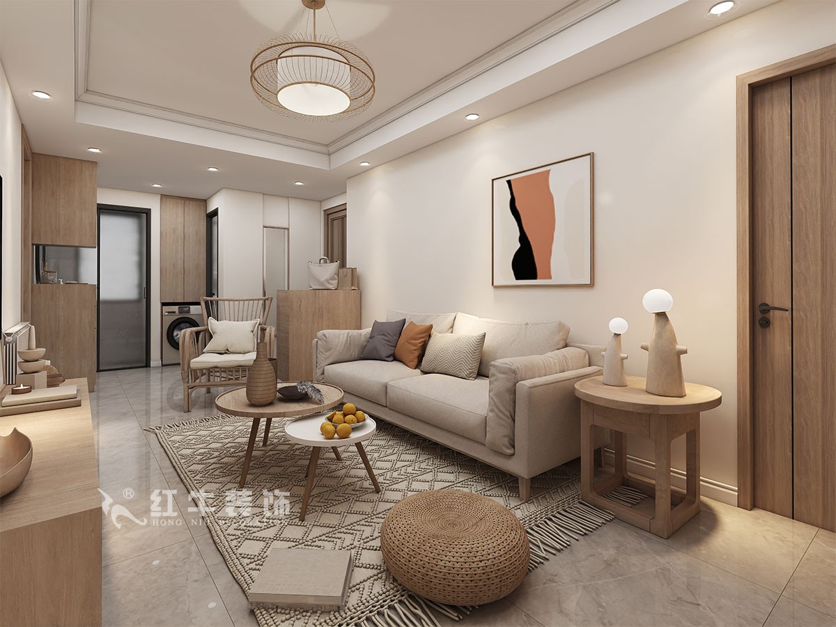 整體風格簡約,白色和木紋色營造出溫馨的生活氣息。