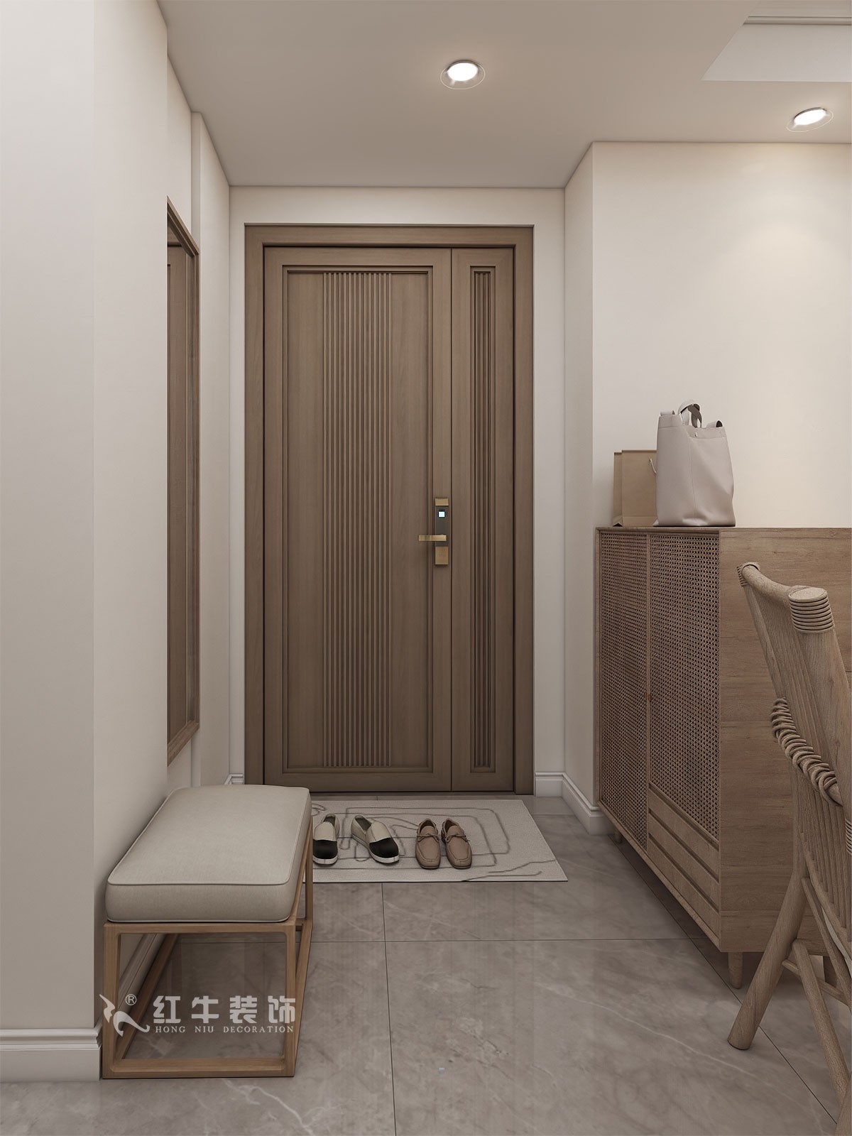入戶墻體拆除做了一組矮柜既不影響采光,又滿足進門儲藏開間。