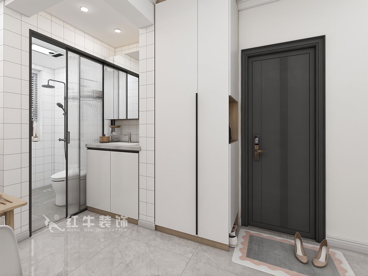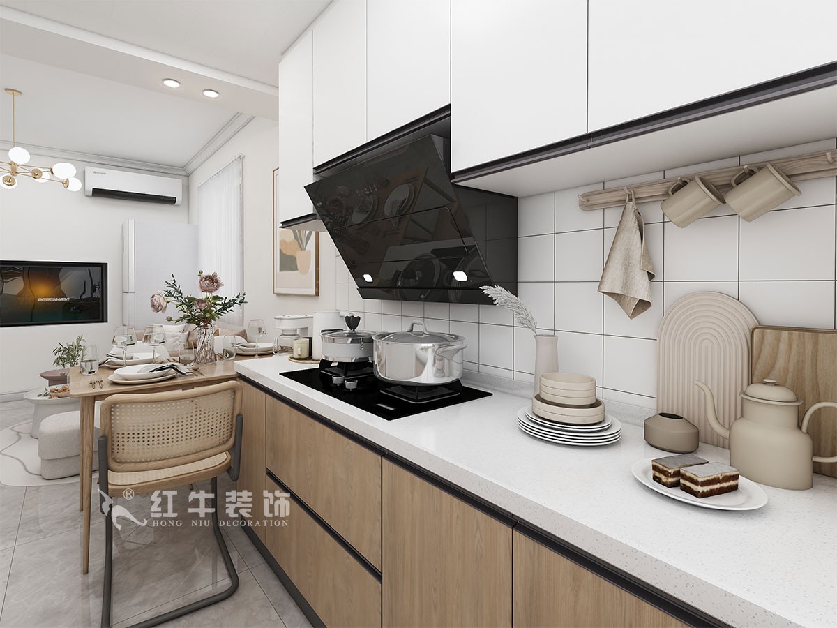 本案北歐風格,通過業主溝通之后,把衛生間改動后,做成干濕分開。廚房做敞開式廚房,讓廚房的空間變大。在空間的設計上強調的是室內空間開闊的理念,這樣的設計風格沒有過多的裝飾物,主要以簡單的線條和裝飾簡潔的造型來體現出現代簡約型的設計。