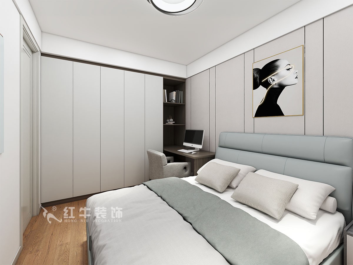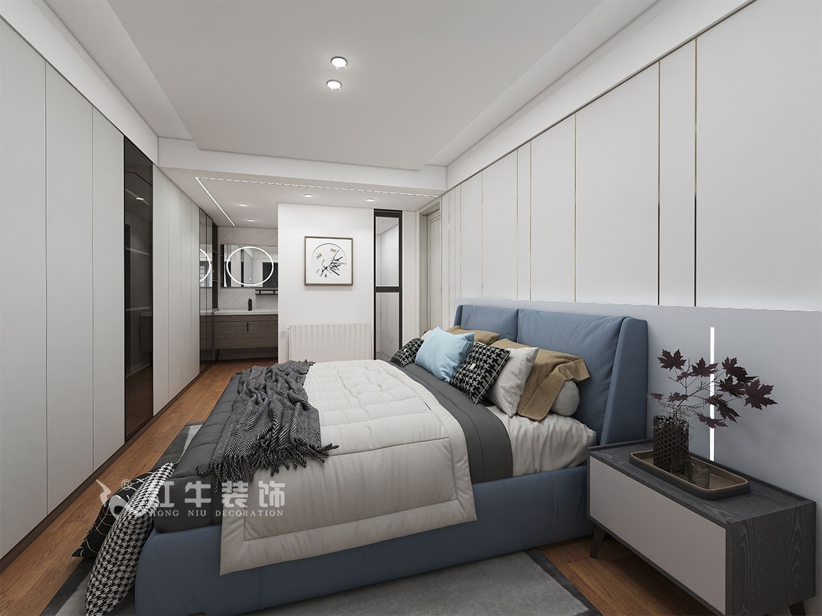 根據(jù)和客戶溝通,客戶喜歡現(xiàn)代風(fēng)格里面帶有一些中式文化的元素,但是整體造型還是希望是現(xiàn)代風(fēng)格,結(jié)構(gòu)上要求兩個(gè)衛(wèi)生間都是干濕分開,餐廳希望是圓桌。設(shè)計(jì)在結(jié)構(gòu)上做了很大的調(diào)整改變,客衛(wèi)生間的墻體進(jìn)行了調(diào)整,干區(qū)的位置也進(jìn)行了變化,這樣餐廳空間邊寬了幾十公分,另外客房的門洞進(jìn)行偏移,同時(shí)也增加了客房的儲(chǔ)物空間,主衛(wèi)生間整體進(jìn)行了偏移,主臥修改門洞的位置,這樣進(jìn)門錯(cuò)開了正對(duì)房門,也錯(cuò)開了正對(duì)主衛(wèi)生間門口的缺點(diǎn)。另外主臥室做一整面墻的柜子,增大了儲(chǔ)物空間。解決了風(fēng)水問題,整體色調(diào)上淡藍(lán)灰色,家里的家具是客戶之前已經(jīng)挑選好的,主臥、次臥進(jìn)行了無主燈的設(shè)計(jì),床頭背景墻上都是采用了現(xiàn)在比較環(huán)保的竹纖維板定制護(hù)墻板,配套線性燈,簡(jiǎn)潔明快有設(shè)計(jì)感。