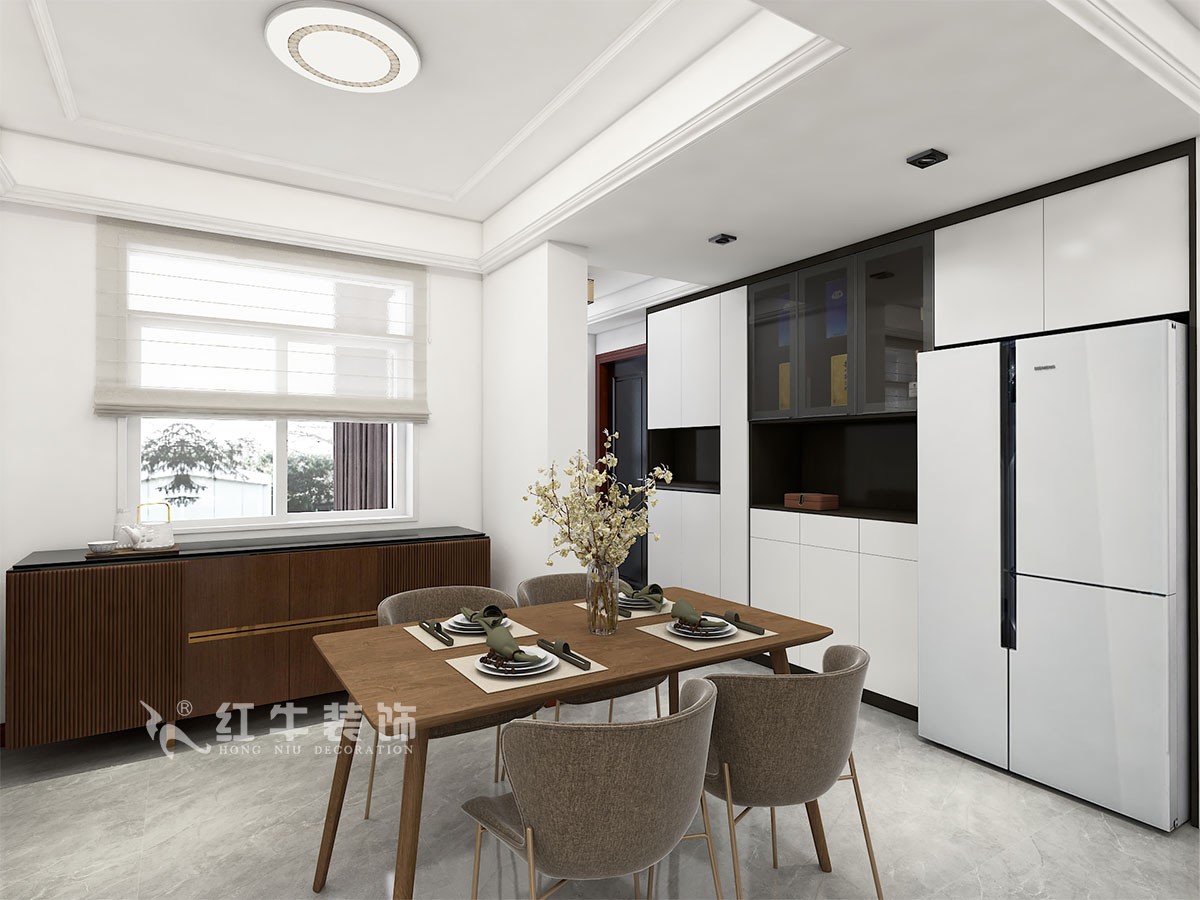 將餐廳與入戶走廊之間的墻拆除,增大餐廳空間。