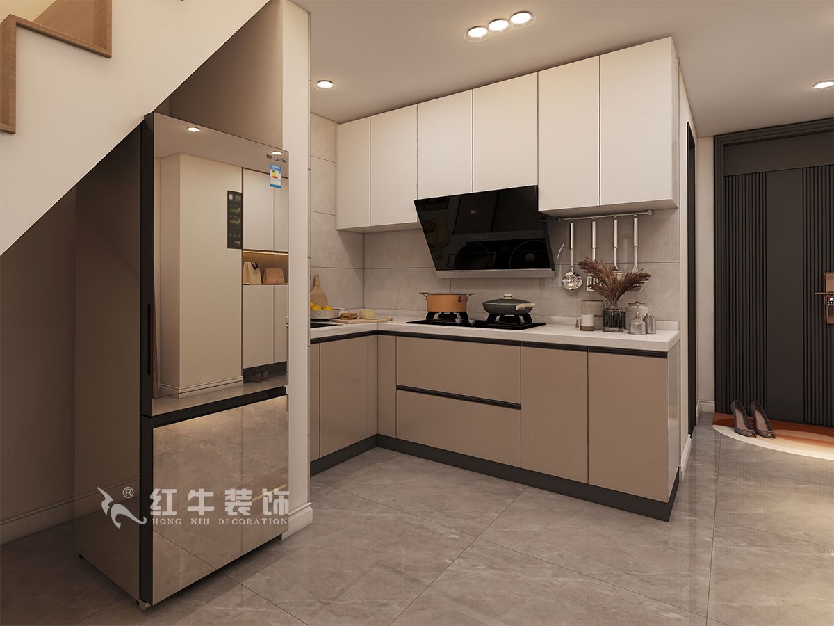 客戶是一對小夫妻,此房為過渡房,想要一個簡潔溫馨的空間。戶型是上下兩層,為了使整個空間不壓抑,客廳做了挑空設計,開放式的廚房也使空間有了延伸感。樓上過道區增加書房區整個空間實用而靈動,整個空間改造后在布局、使用上更為舒適實用。