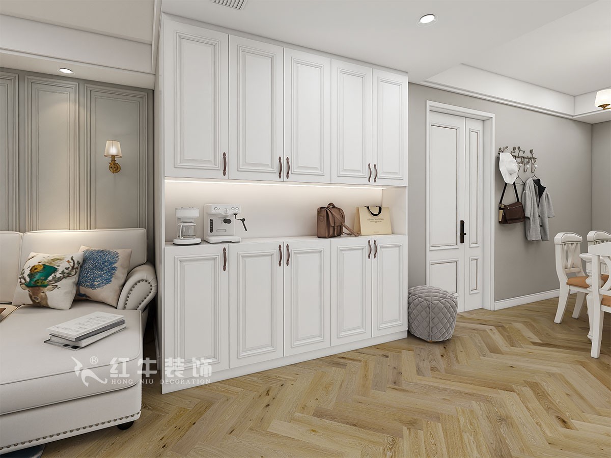 業主一家三口居住,由于要用原來房子簡歐家具,所以整體的風格確定為簡歐風格,房型比較規整,主要考慮到每個空間的合理利用,空間利用率最大化,盡可能多一些儲物空間。再有利用陽臺空調外機的位置,給貓咪留了一個單獨的空間。