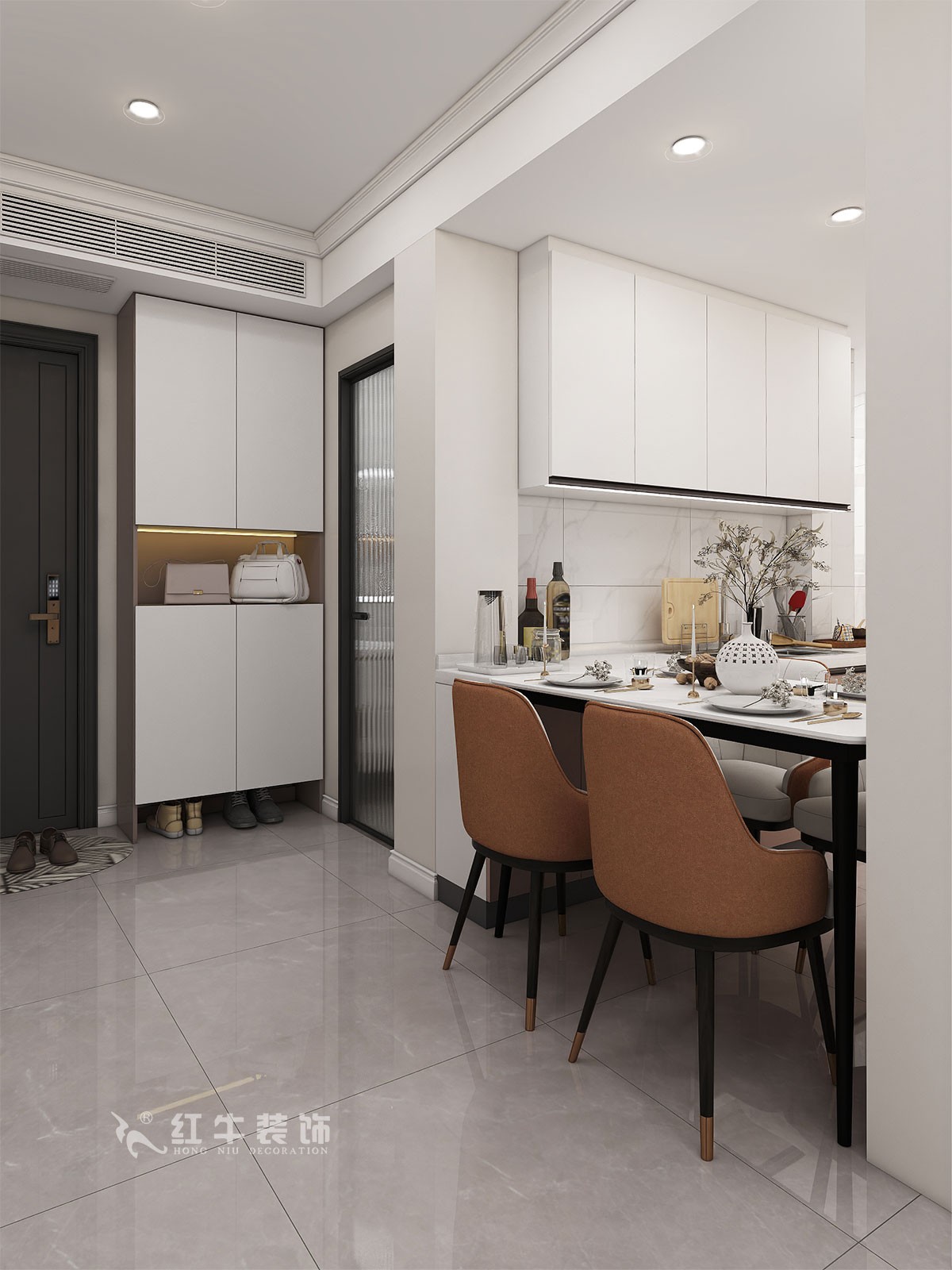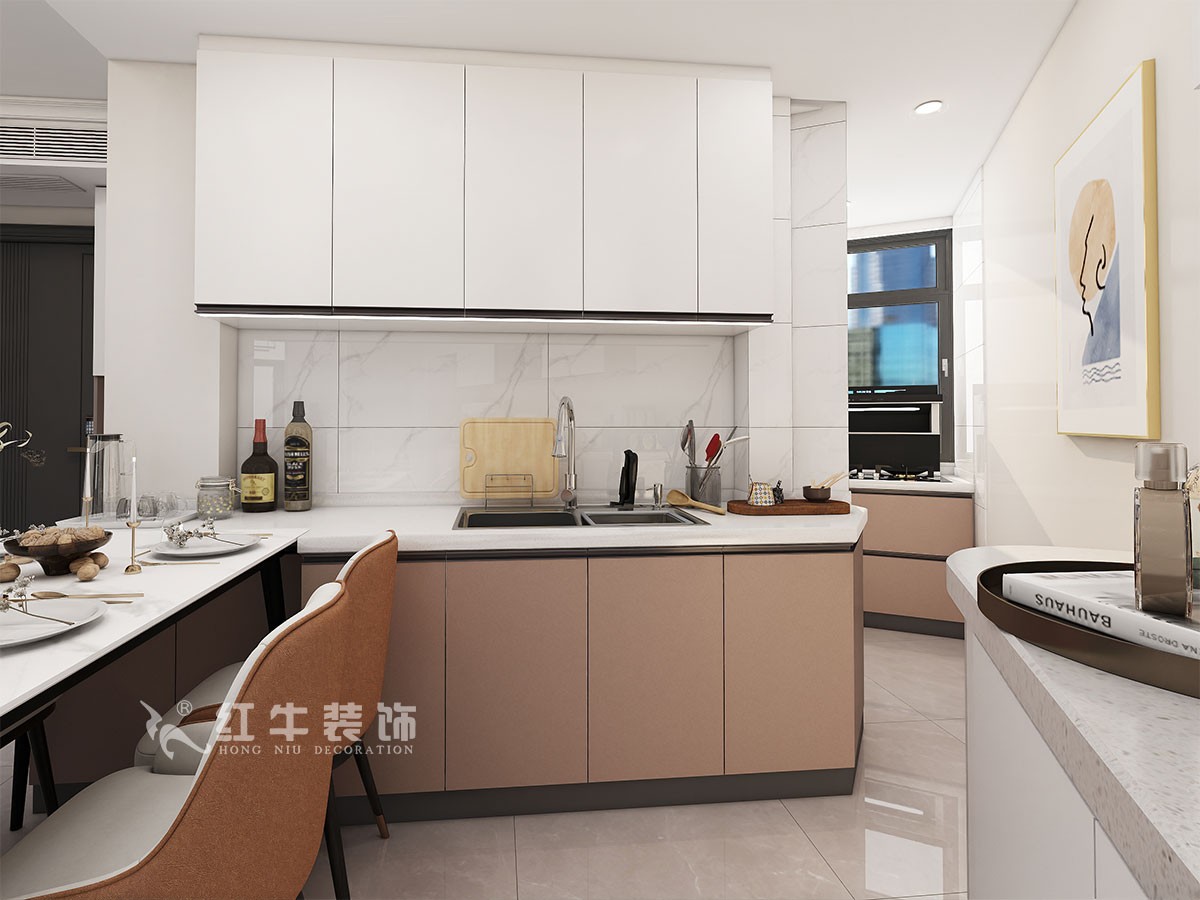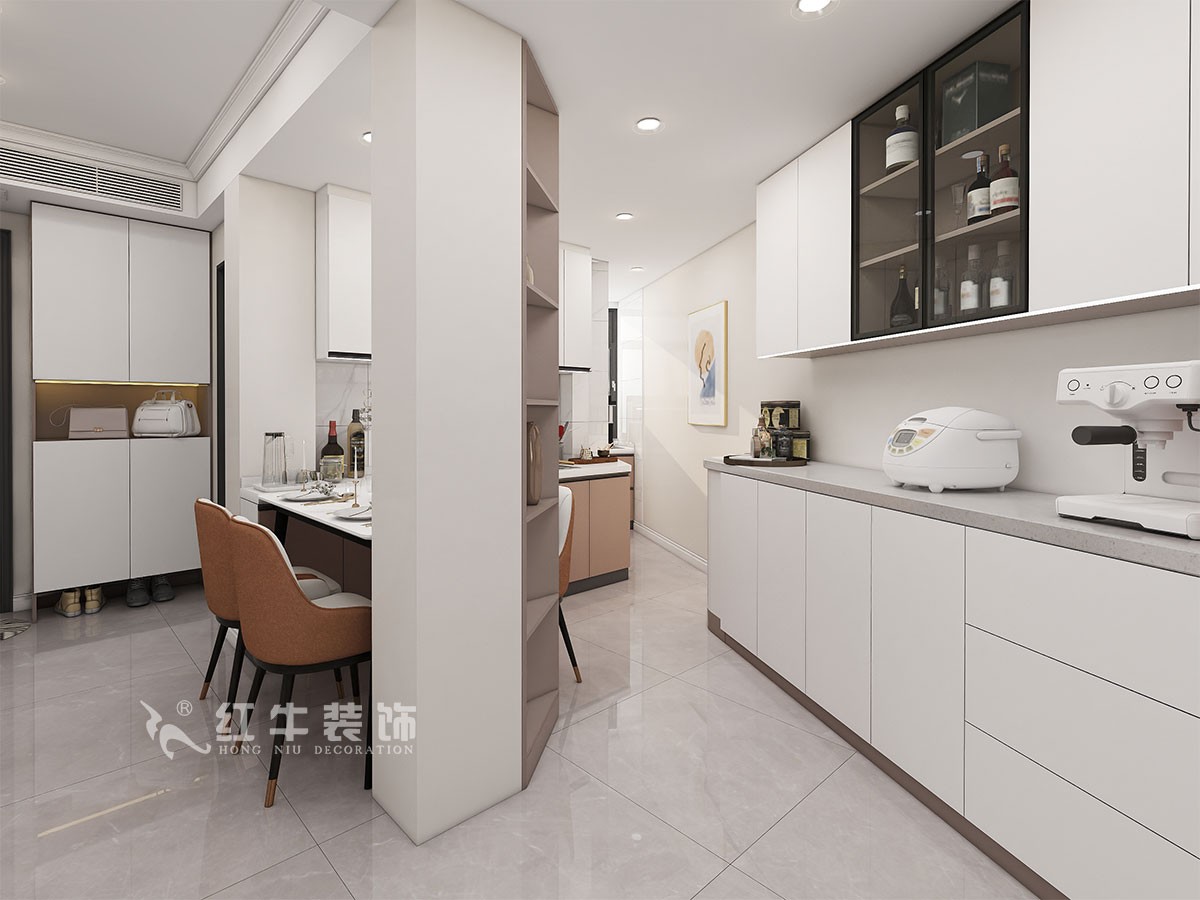 業主一家三口居住,房型不規整,主要考慮到每個空間的合理利用,空間利用率最大化,盡可能多一些儲物空間。廚房和餐廳形成一體,使整個空間更加和諧,溫馨。