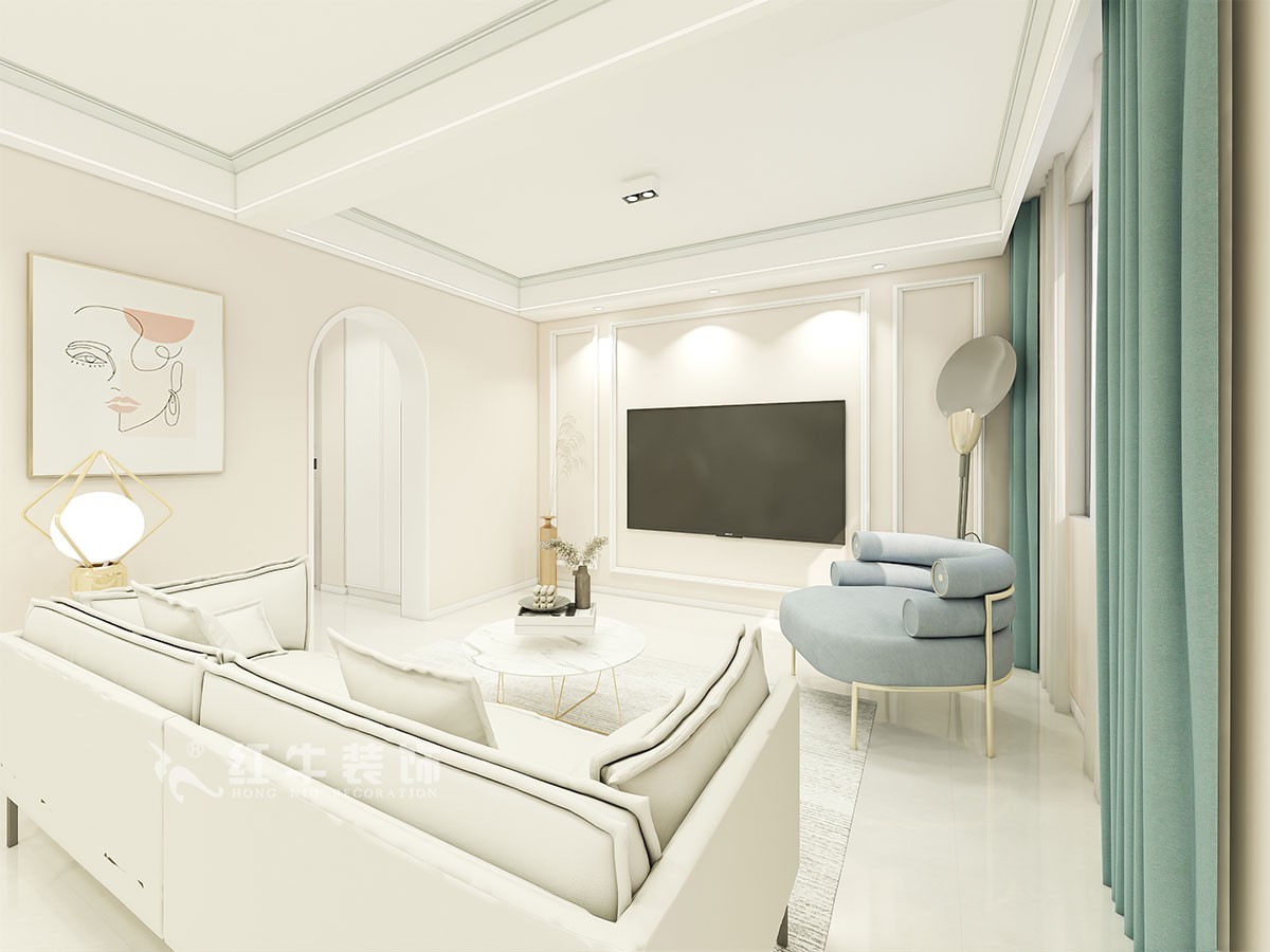本案是個老房子重新裝修,客戶是想做婚房裝修,喜歡奶油小清新的風格,結構上是80年代的房屋,老房子結構,結構上基本上不能改動,客廳縱深比較長,為了動線和餐廳的采光,在客廳門的另外一邊開了一個門洞,使得客廳的動線更方便,整體乃奶油色加白色的石膏線條,現代的有創意的家具,問題溫馨簡潔。主臥背景墻選用白色石膏線條和地面灰木紋的地板作為整體的襯托,讓主臥室充滿了寧靜又不是溫馨。